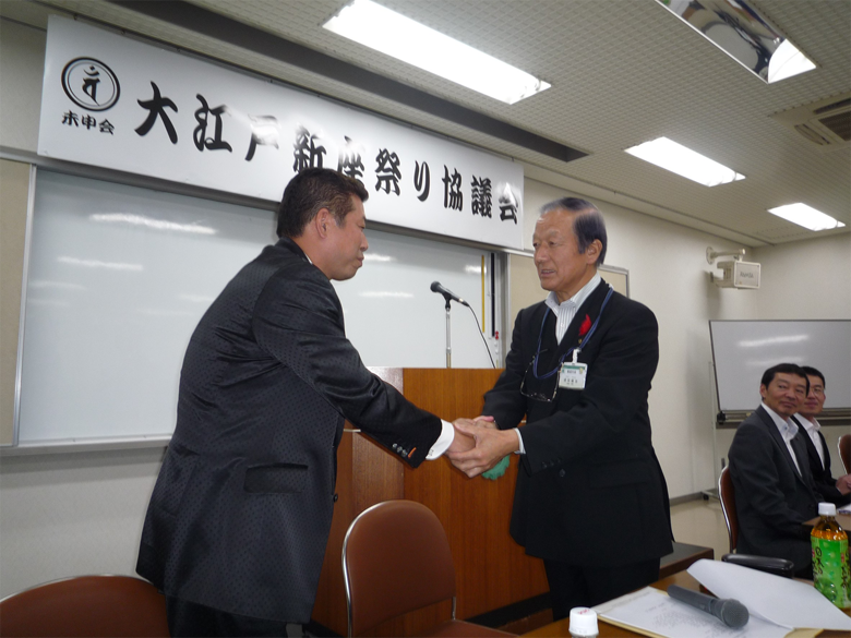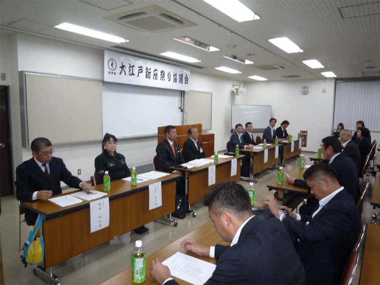未申会主催により2014年10月17日、第一回大江戸新座祭り協議会が開催され、「官民一体、北も南も新座はひとつ」というスローガンのもと、大江戸新座祭り阿波踊り大会開催を、発起人代表 本間吉勝未申会会長と、須田賢治新座市長とで固い握手が交わされ、参加者満場一致で開催決定が可決されました。
